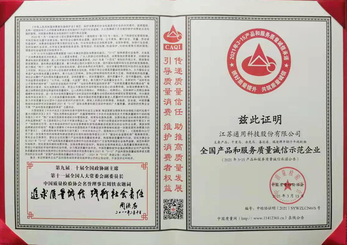 近日,在由中國質(zhì)量檢驗(yàn)協(xié)會(huì)主辦的2021年3·15國際消費(fèi)者權(quán)益日產(chǎn)品和服務(wù)質(zhì)量誠信承諾主題活動(dòng)中,通用股份憑借優(yōu)質(zhì)的產(chǎn)品性能、穩(wěn)